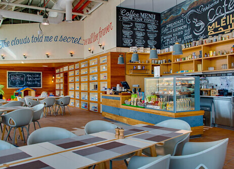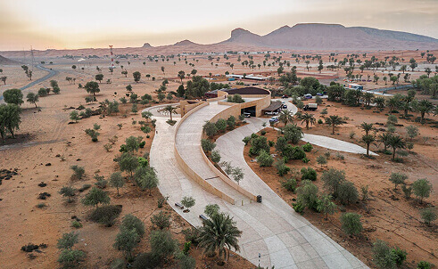 Pause between your explorations for a refreshing break in the warm and welcoming ambience of Mleiha National Park Cafe. You can enjoy a wide selection of breakfast, lunch, snack and beverage items on the open terrace or inside, which features beautiful panoramic views of Fossil Rock. Our reading cove invites you to cozy up with a book from our shelves to truly enjoy this serene space.